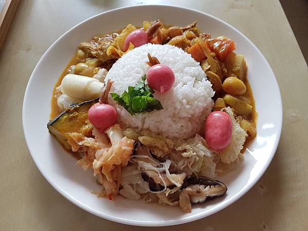瓣、甜菜根汁、南瓜汁、紅蘿蔔汁,煮成深淺不一的彩色飯,或趁飯熱加入去籽火龍果肉或自種