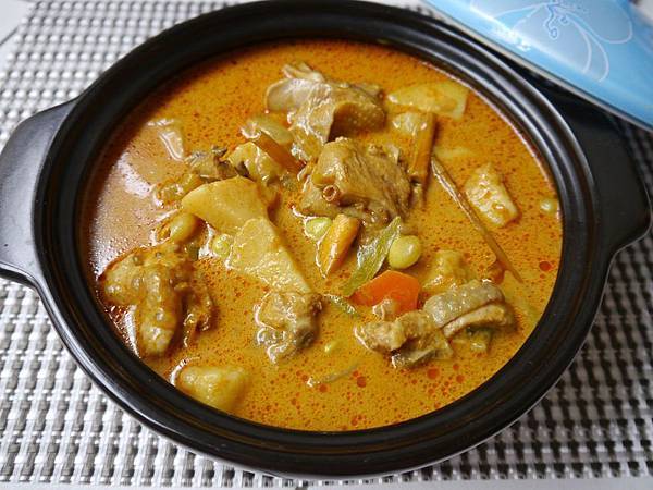 今天中午,煮了馬來西亞楊子同學送的肉類咖哩,用雞腿,馬鈴薯,紫洋蔥,毛豆,和咖哩醬,椰漿,清水自種的新鮮咖哩葉,泰式檸檬葉,檸檬香茅,翔子說很溫和順口,楊子,謝謝分享喔!