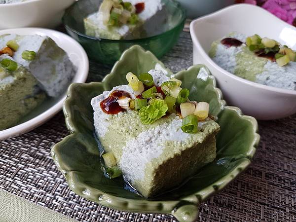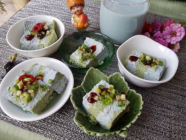 蝶豆藍花和地瓜葉雙色豆腐
