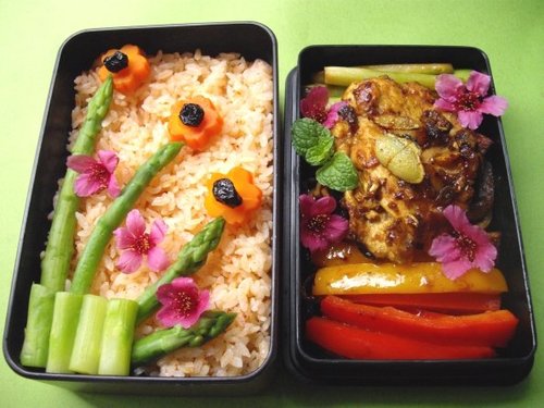 蔔與飯同蒸,這樣綴飾的花也有了,主菜是咖哩雞排,配菜